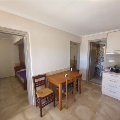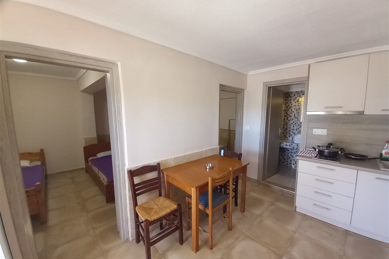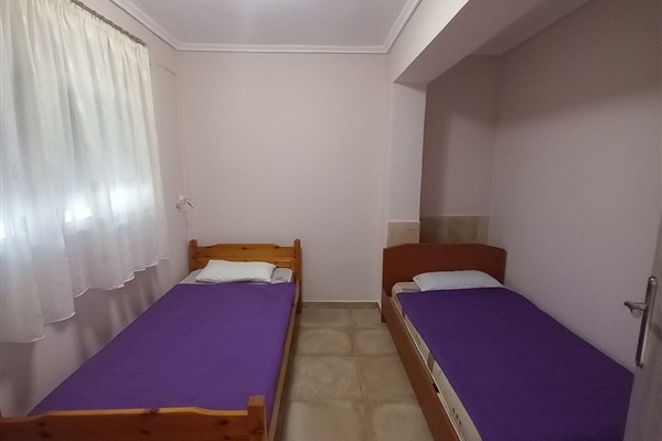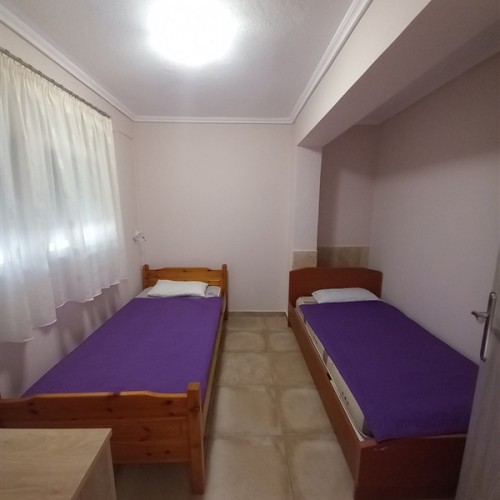 1 /5 Дуплекс на приземје - Располага со 2 Спални соби и дневен престој. Во едната спална има брачен кревет и нема природна светлина (прозор) и втора спална соба со два единечни кревети. Во дневна соба има единечен кревет и во истата просторија е со кујна - опремена со голем фрижидер и решо. Климата и ТВ се во дневната просторија.